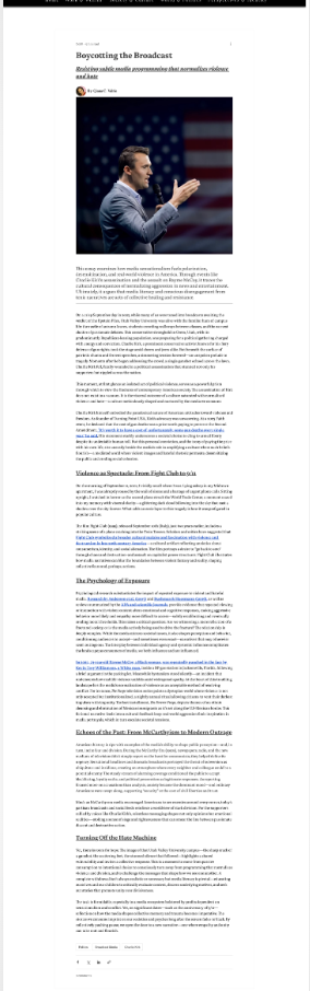 Boycotting the Media, Resisting subtle media programming that normalizes violence and hate, Parlor Magazine, October 2025